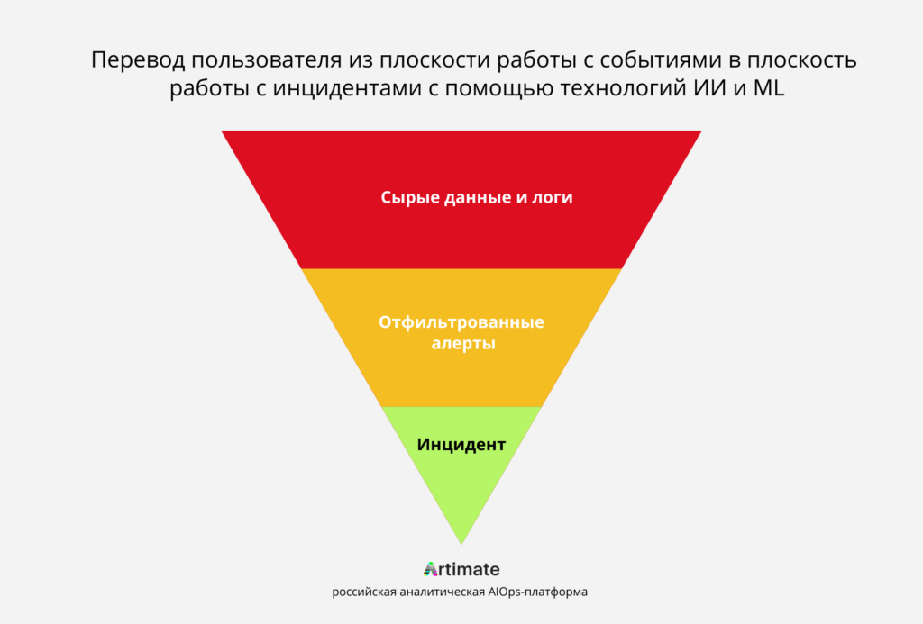 Перевод пользователя из плоскости работы с событиями в плоскость работы с инцидентами с помощью технологий ИИ и ML.