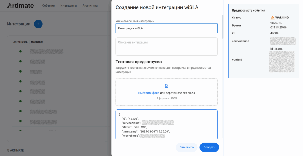Добавлен готовый коннектор, который позволяет быстро настроить обмен данными между Artimate и wiSLA без дополнительной разработки.
