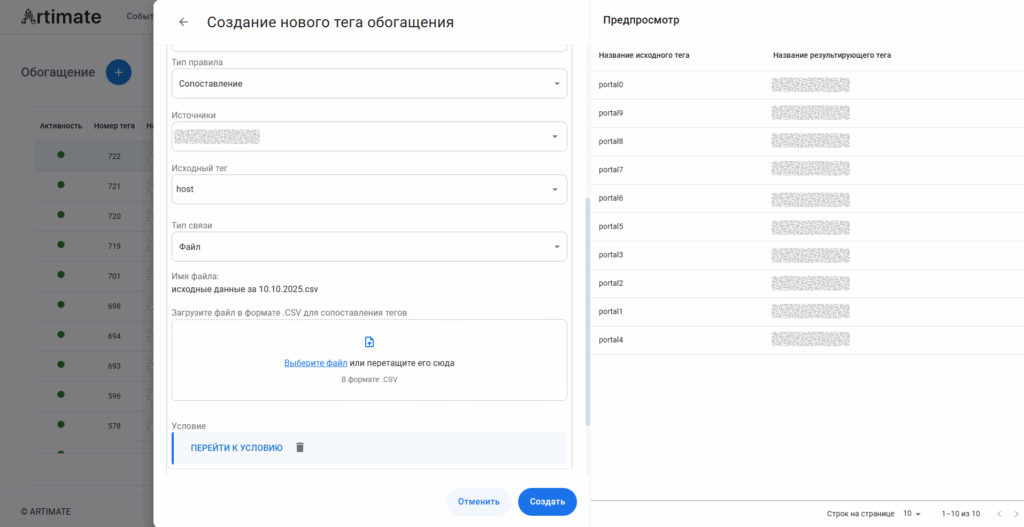 Упрощение процесса сопоставления данных между исходным тегом и тегом обогащения путем внедрения функционала загрузки данных в CSV-файле в правило тега обогащения. Это уменьшит время пользователя на создание правил сопоставлением данных и повысить прозрачность процесса.