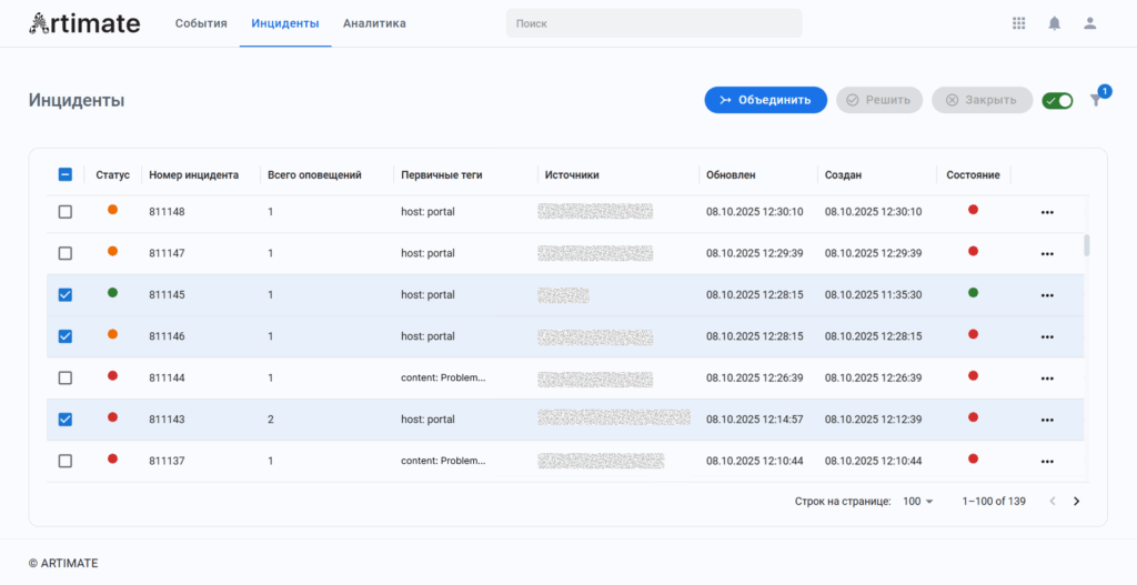 Ручное объединение инцидентов