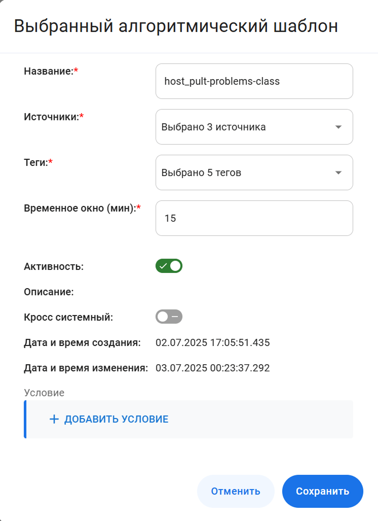 Алгоритмические шаблоны корреляции Позволяют задать простые правила корреляции оповещений, применяются сразу, не требуют исторических данных